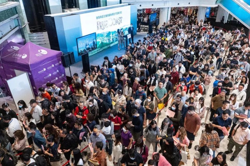 今年4月6日,看房人在香港某住宅项目的售楼处排队