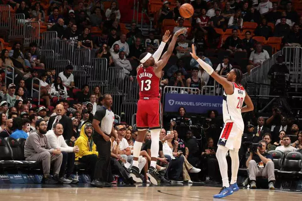 热火过去5场收获5连胜,奇才过去8场遭遇8连败。本赛季首次交锋热火客场132-101大胜奇才。本场奇才缺少浓眉哥、拉塞尔与乔治等,热火缺少韦尔、希罗、维金斯、鲍威尔、罗齐尔等。阿德巴约首节大爆发表现,他单节打满12分钟16中10,其中外线三分8中5,外加罚球7中6,一人狂轰31分3篮板1抢断1盖帽创造多项纪录,比奇才全队首节还多得到2分,引领热火首节40-29领先奇才。