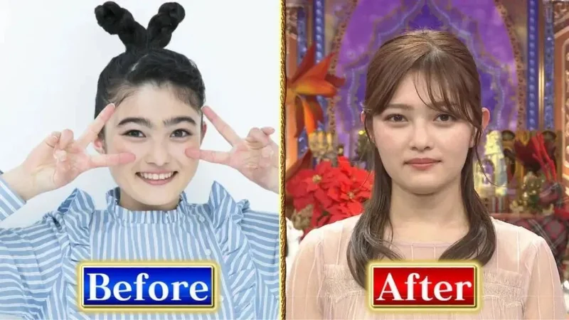 来看一下改造前后的对比:原来的她,浓眉大眼,像个元气满满的小男孩;现在的她,眉毛变细了,长发披肩,妆容精致,整个人散发着温柔的女人味。