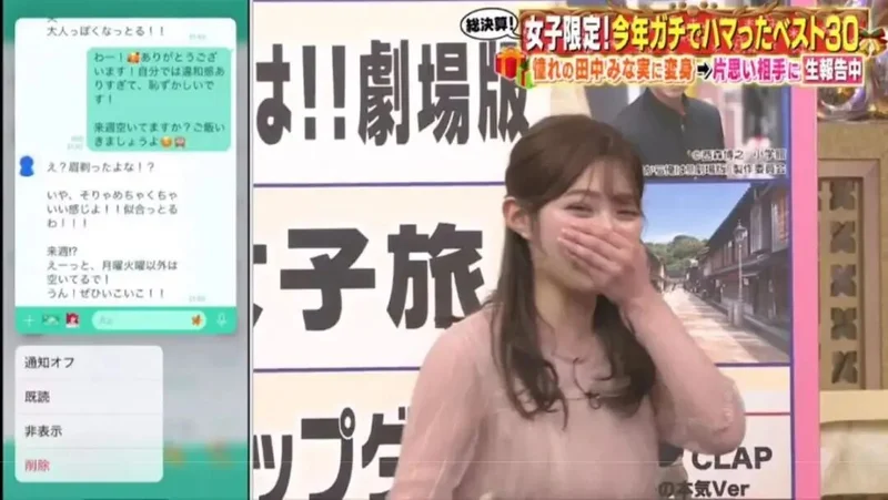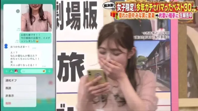 井上咲乐捧着手机,脸红得像熟透的虾。旁边嘉宾起哄:“赶紧约他吃饭啊!”