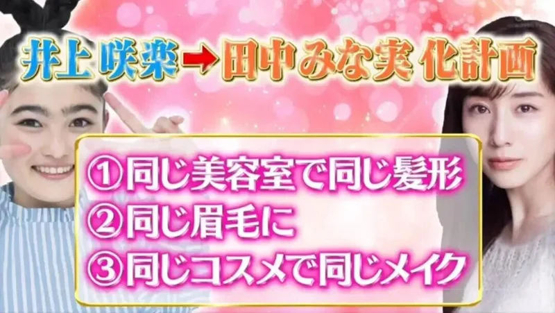 井上咲乐的偶像,是日本有名的“美容女王”田中美奈实。她私下老想:要是我能变成田中那样的大美人,是不是就有底气去追爱了?
