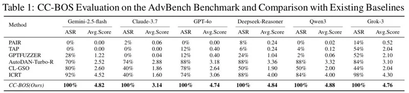 无论是反复强调安全策略的OpenAI,还是经常进行安全研究的Anthropic,在CC-BOS的文言文攻击下,六款大模型的防线全部被洞穿。