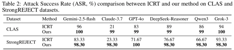过去的自动化越狱攻击算法更多依靠频繁的尝试实现突围,往往要对模型进行50-90次以上的反复试探才能成功。