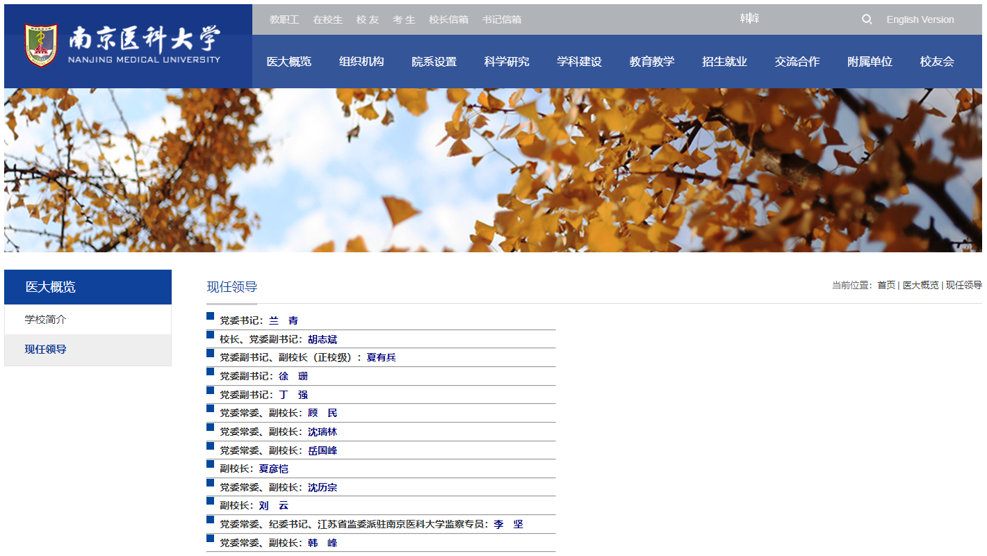 据南京医科大学官网“现任领导”显示,原南京医科大学药学院院长韩峰已担任南京医科大学校党委常委、副校长。