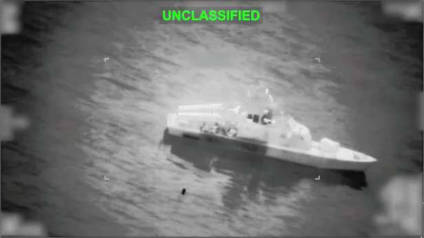▲10日,中央司令部在X发布的攻击霍尔木兹海峡伊朗舰艇的视频。美军称,发现伊朗试图在霍尔木兹海峡布设水雷的动向,攻击了可布设水雷的16艘布雷船等军舰。/美中央司令部提供