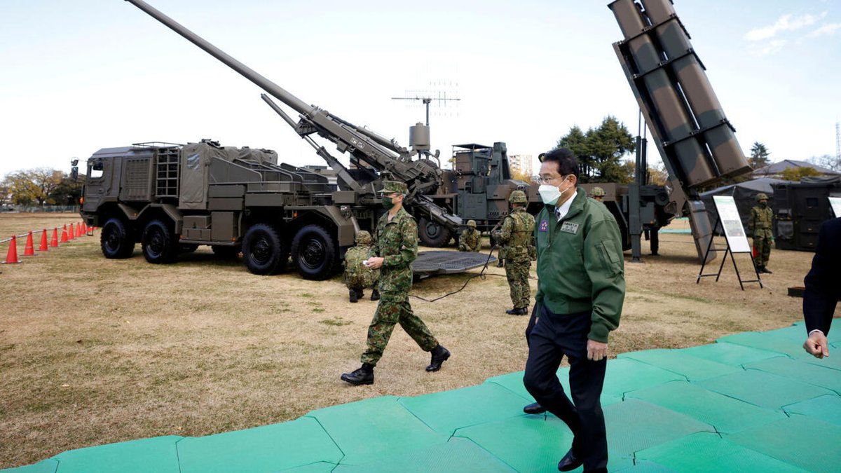 Japan's Prime Minister Fumio Kishida walks past a Japan Ground Self-Defense Force (JGSDF) Type 19 155 mm wheeled self-propelled howitzer and a Type 12 surface-to-ship missile as he inspects equipment during a review at Japan Ground Self-Defense Force (JGSDF) Camp Asaka in Tokyo, Japan, November 27, 2021. REUTERS - POOL