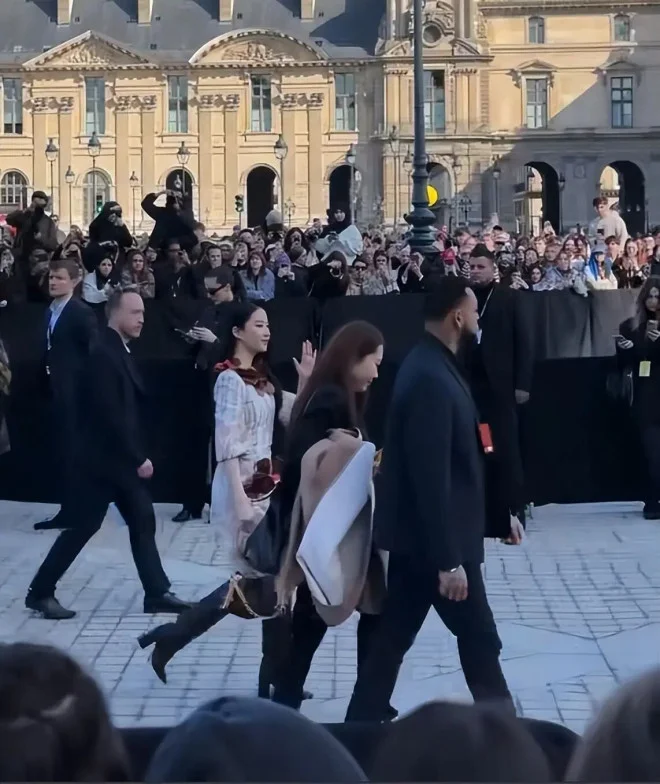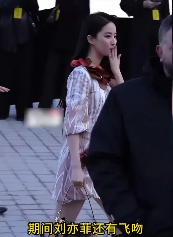 然而,比静态生图更“致命”的,是动态的瞬间。刘亦菲下车一刻,现场观众席瞬间爆发出“Liu Yifei!”和“Mulan!”的高声欢呼,外国粉丝狂热的喊话声穿透了整个秀场。面对镜头与热情粉丝,刘亦菲数次自然送出飞吻,仪态在优雅与俏皮间无缝切换。这段“飞吻互动”视频单日播放量激增,衍生出“这飞吻谁接得住啊”、“被神仙姐姐的飞吻击中了”等全网热梗。