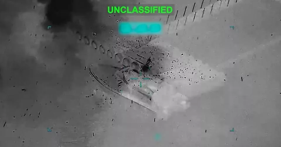 美军释出布雷船遭摧毁的影像。(图/[email protected]. Central Command)