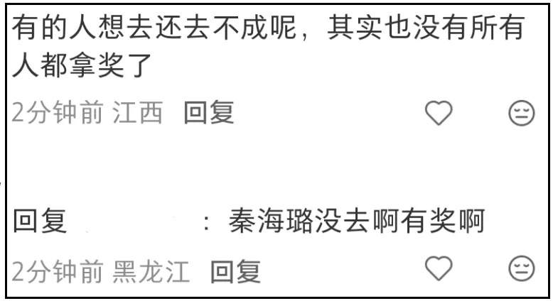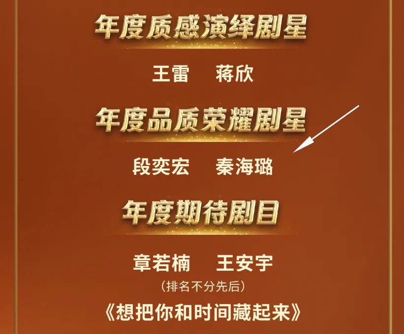 并没有啊!杨幂和秦海璐都没跟着《生万物》剧组参加活动,同样是缺席,秦海璐就有奖,杨幂就没有。