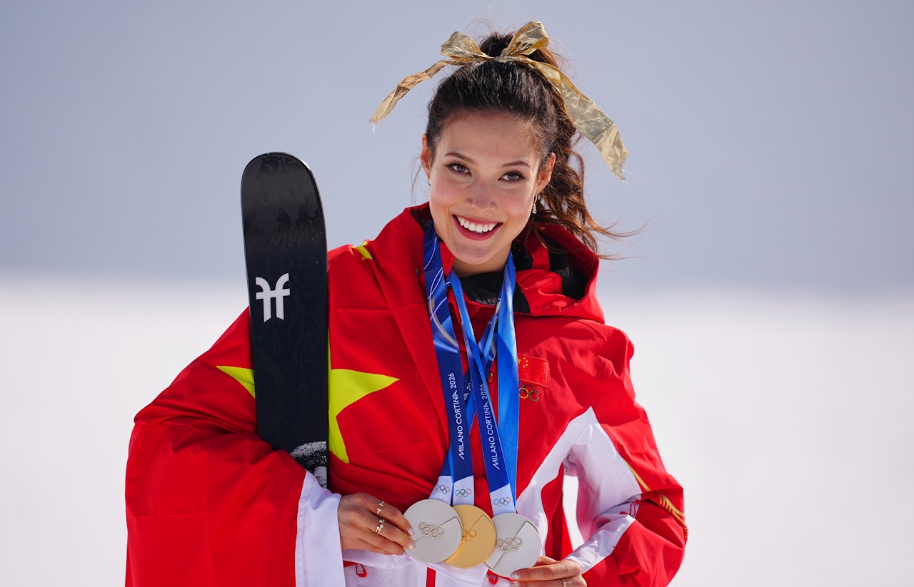 2月22日,米兰冬奥会自由式滑雪女子U型场地技巧决赛中,中国选手谷爱凌夺金。(新华社)