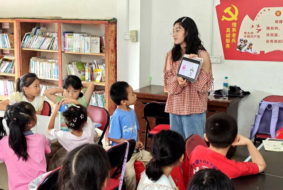2025年暑假,同济大学春雨支教队队员在江西一个村庄陪伴六十余名留守儿童。视觉中国图