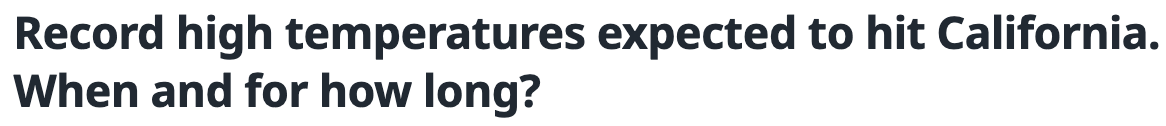南加州: 情况更为严峻,洛杉矶周边地区气温可能飙升至接近 100°F,海岸线城市也难逃高温侵袭。