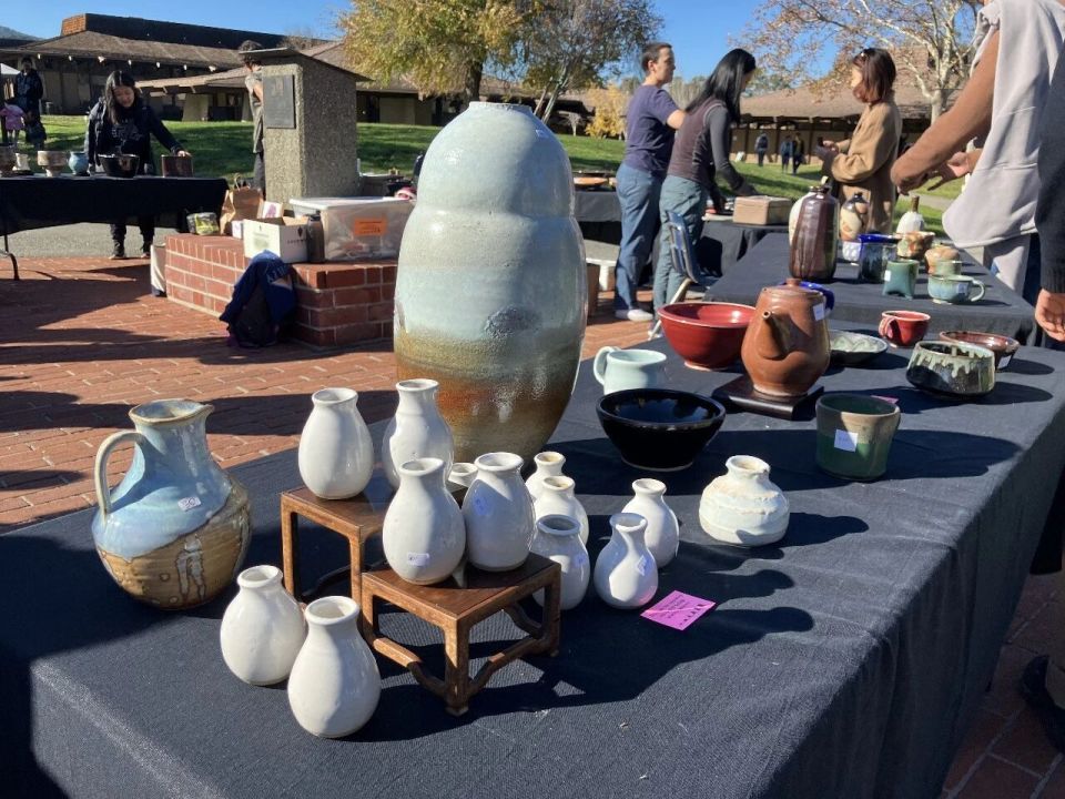 学校陶瓷课学生在做义卖活动
