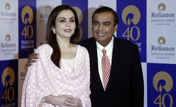 位居亚洲富豪家族排行榜的榜首穆克什‧安巴尼和他妻子。(图/达志影像/美联社)