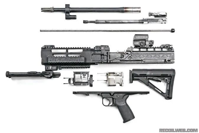 虽然外形看起来有了很大的变化,但 LAMG 和 AMG 的自动原理、动作机构基本都是沿用了斯通纳 86,因为类似恒定后坐的原理,所以射击时后坐力非常低,但机匣也因此比较长,而且理论射速也不高。