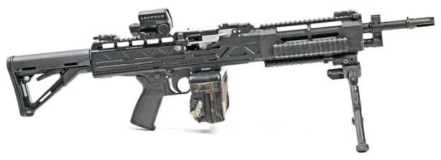 ▲挂 200 发弹箱的 LAMG 轻机枪