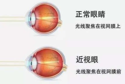 既然是成像在视网膜之前,那基本就是两种原因引起:一是眼轴太长了,眼球前后径太长了,平行光线成像在前;二是眼轴长短没变,但是角膜或者晶体的曲率有问题,导致成像在前。