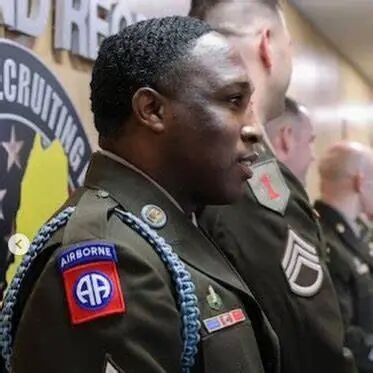 图中的美国陆军士兵在右肩章下佩戴一根蓝绳子,今天就来介绍这个蓝绳子的来历。