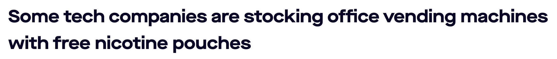 在追求极致性能的科技圈,一些员工认为尼古丁能帮助他们更集中注意力。奥斯汀一家 AI 医疗初创公司的创始人 Alex Cohen 甚至曾在公司设立“尼古丁冷藏柜”,因为他发现工程师们都在用,以为这能“提高生产力”。