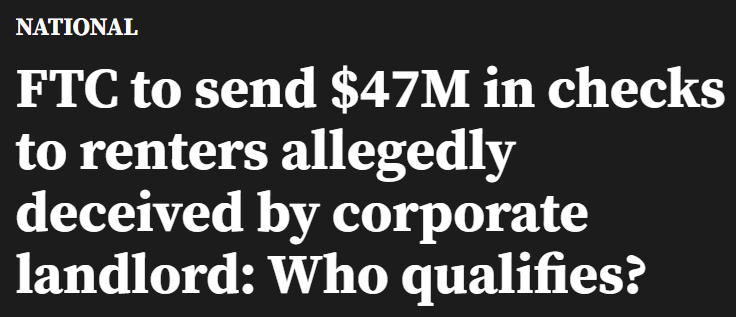 周三,美国联邦贸易委员会(FTC)宣布,将向超过44万名曾被坑过的租客发放总计4720万美元的退款支票,而背后的“主角”是全美最大的单户住宅租赁公司——Invitation Homes。
