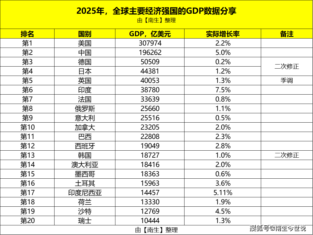 整张榜单尘埃落定,2025年全球经济的核心特征一目了然,没必要逐个拆解剩余经济体(感兴趣的网友可自行对照表格查看),整体走势清晰可见:增长分化贯穿全年,发达经济体与新兴市场呈现冰火两重天,账面增长与实际活力的反差格外明显。