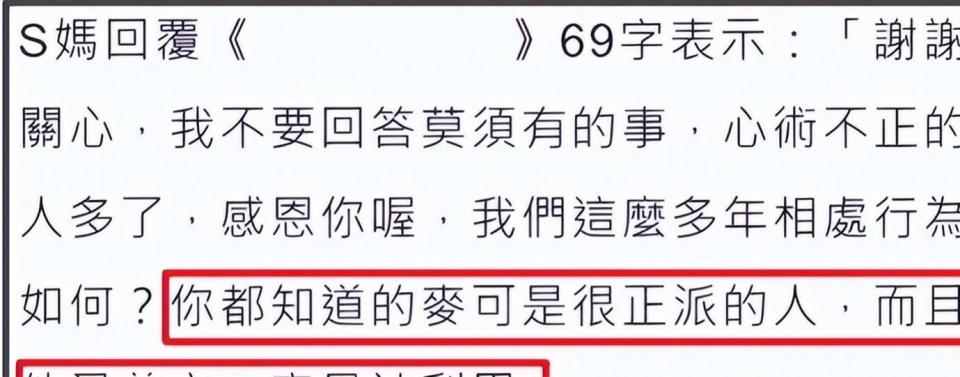 S妈倒是第一时间跳出来护女婿,说许雅钧“很正派,又善良,只是容易被利用” 。