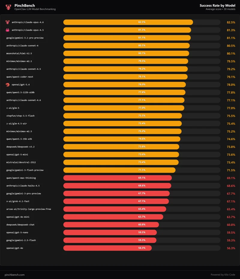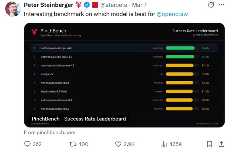 最近,OpenClaw创始人 Peter Steinberger 发布了一份名为 PinchBench 的基准测试榜单。