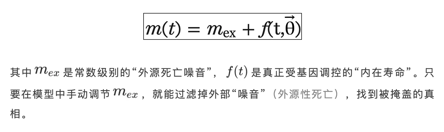 通过对比理想与现实环境,研究直观呈现了外源性死亡如何通过压缩均值和拉伸分布,系统性地调低了我们测算出的长寿遗传率。| 参考文献[1]