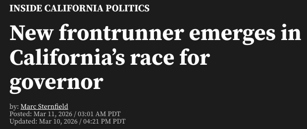 据3月11日报道,加州州长竞选局势再度出现变化,又一位新的领跑者浮出水面。