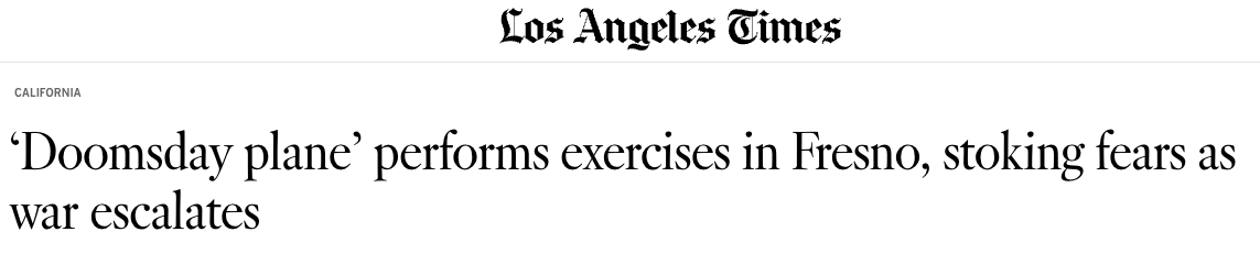 “末日飞机”加州演习,引发恐慌猜测LA Times网站