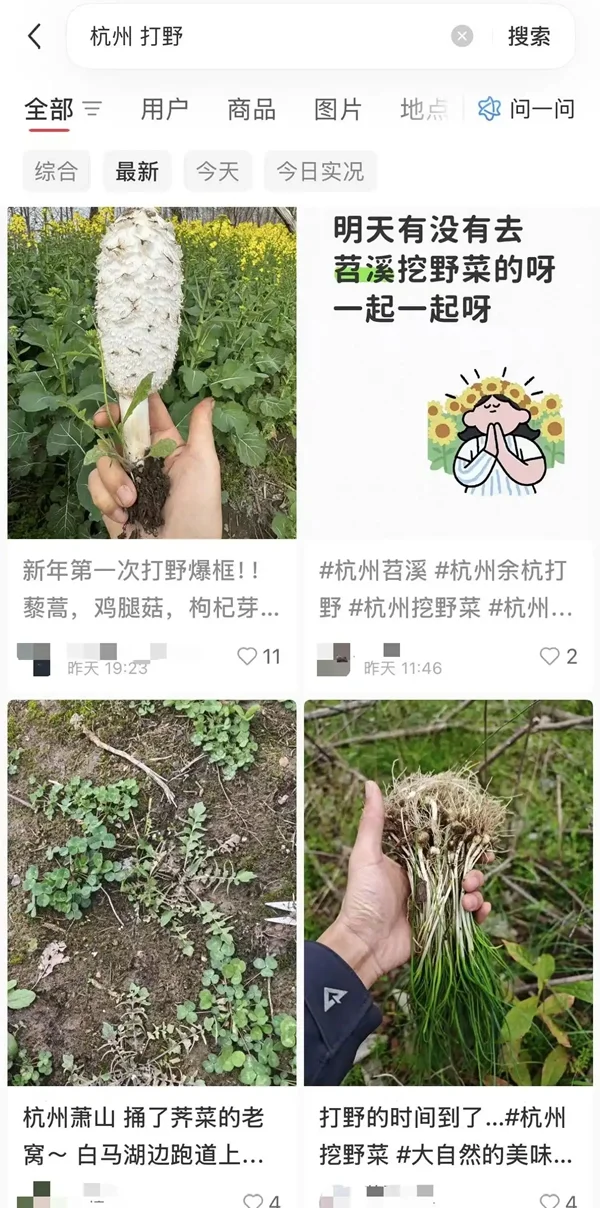 在杭州的社交平台上,有人分享城郊“打野地图”,标注荠菜、苜蓿芽的生长地点;也有人记录挖野菜的治愈瞬间,分享识别野菜的实用技巧。趁着周末,杭州“00后”姑娘小谢紧跟着“打野小组”分享的地图,一头扎进春天里。“一群人在田地里找野菜,就像在玩现实版的‘打野刷怪’。”小谢说,对她而言,挖野菜不仅是休闲,更是一种低门槛的治愈。“不用早上赶车,不用烦心工作,将野菜连根拔起的时候,烦恼也被‘挖’走了。”