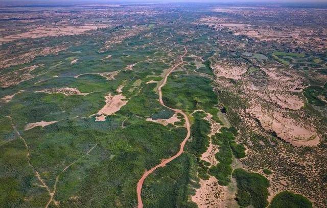 治沙的关键,是打通沙漠腹地的通道。1997年6月16日,穿沙公路正式开工,整整两年时间,治沙队员们在沙漠里顶风沙、战酷暑,硬生生修出了一条115公里长的公路,彻底打通了库布其沙漠的治理通道。