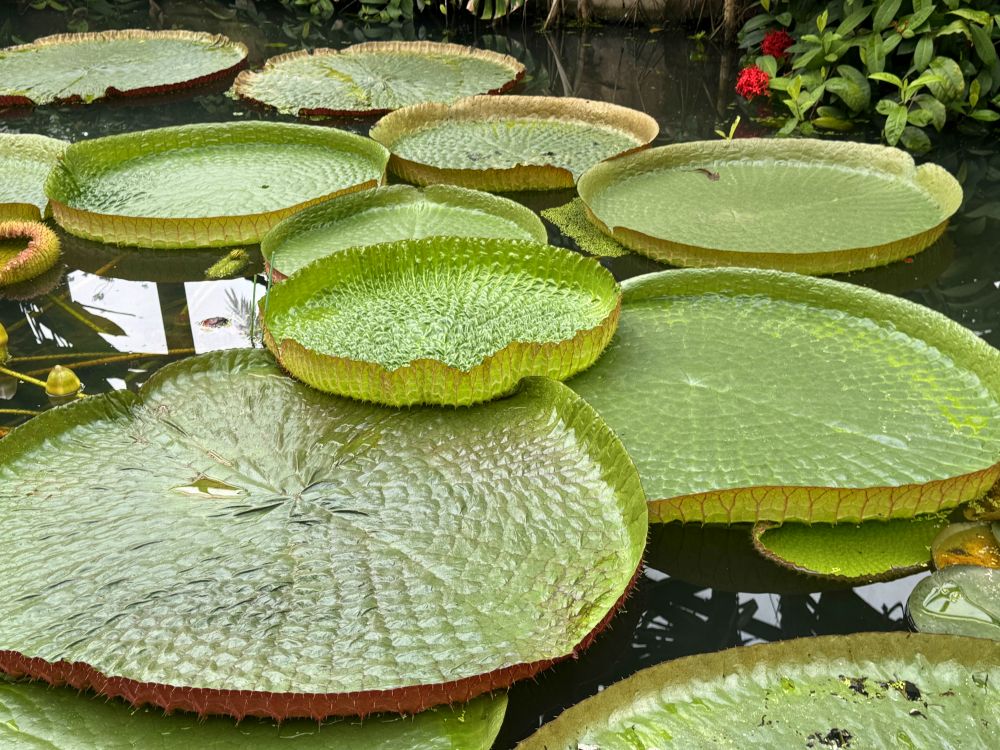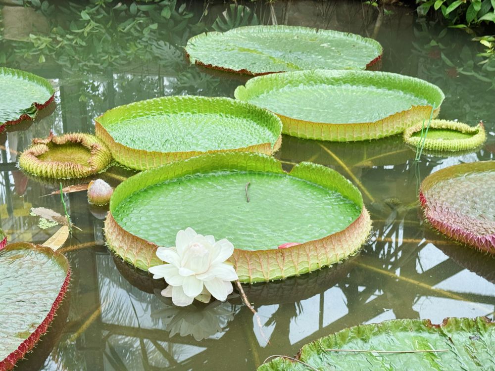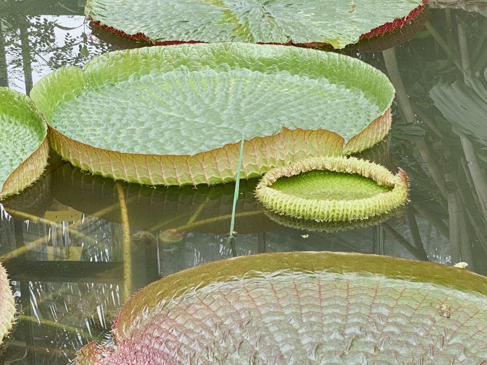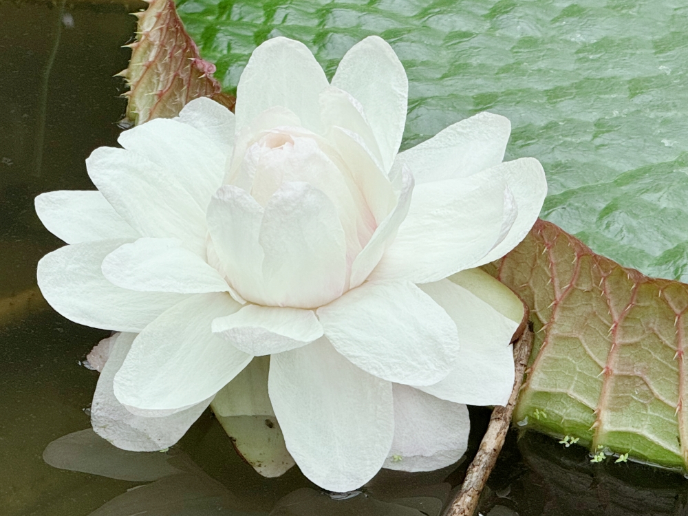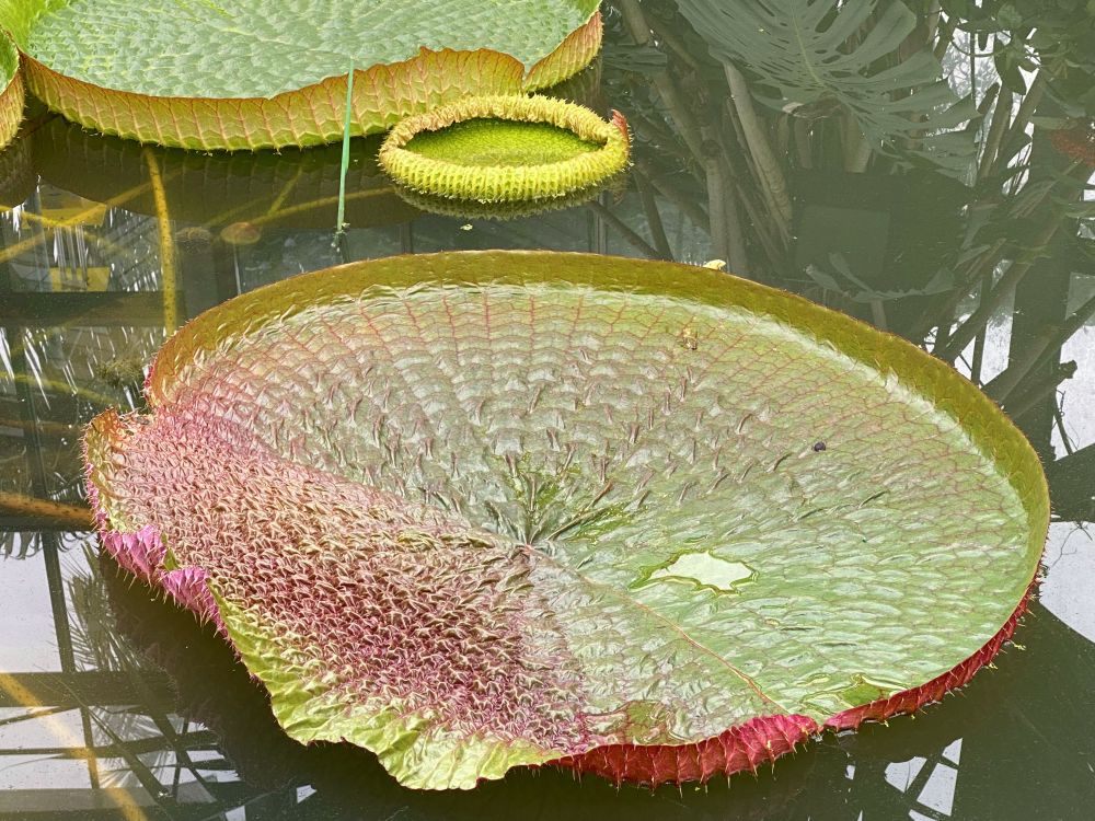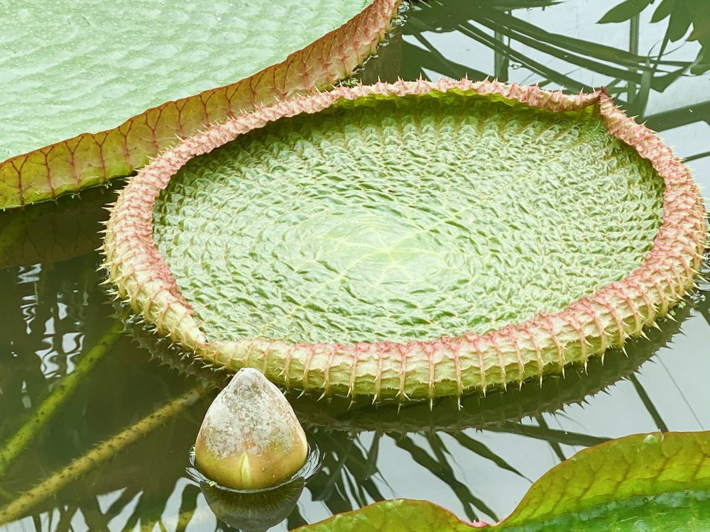 不过,精美绝妙的王莲花叶,离开了叶背的硬刺就命运堪忧生机黯然。那些布满叶片底部的硬刺,不仅能排挤周围企图绞缠纷扰的水生植物,还能避免小鱼小虾各种动物的啃噬撕咬,维护王莲的生存环境,保障花叶的生长供给。