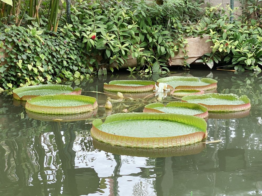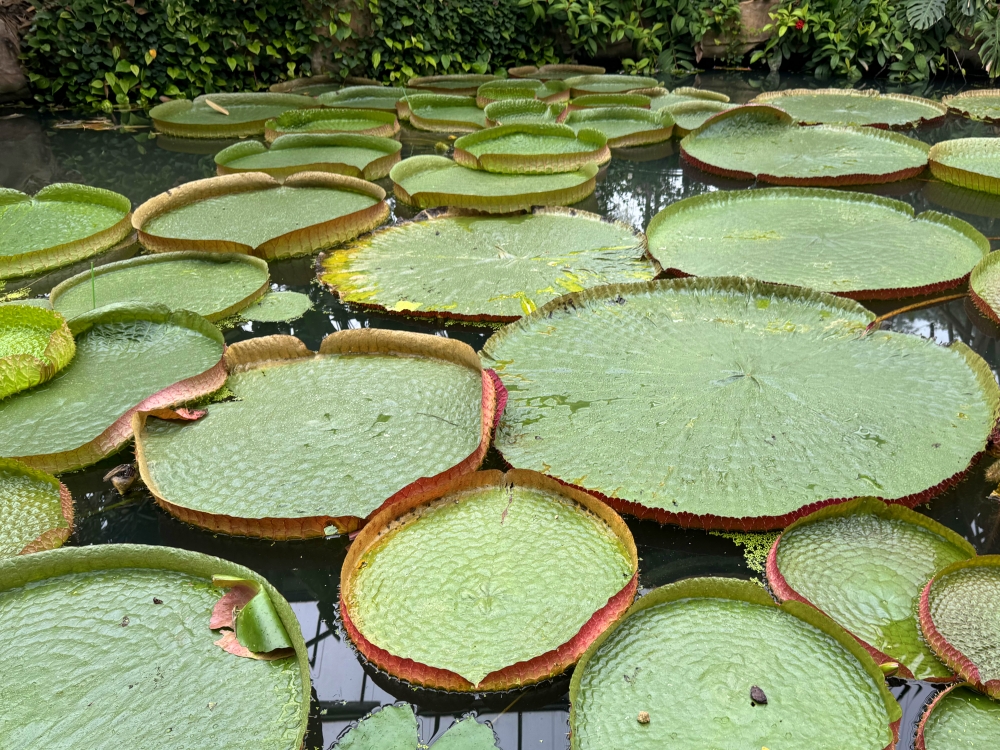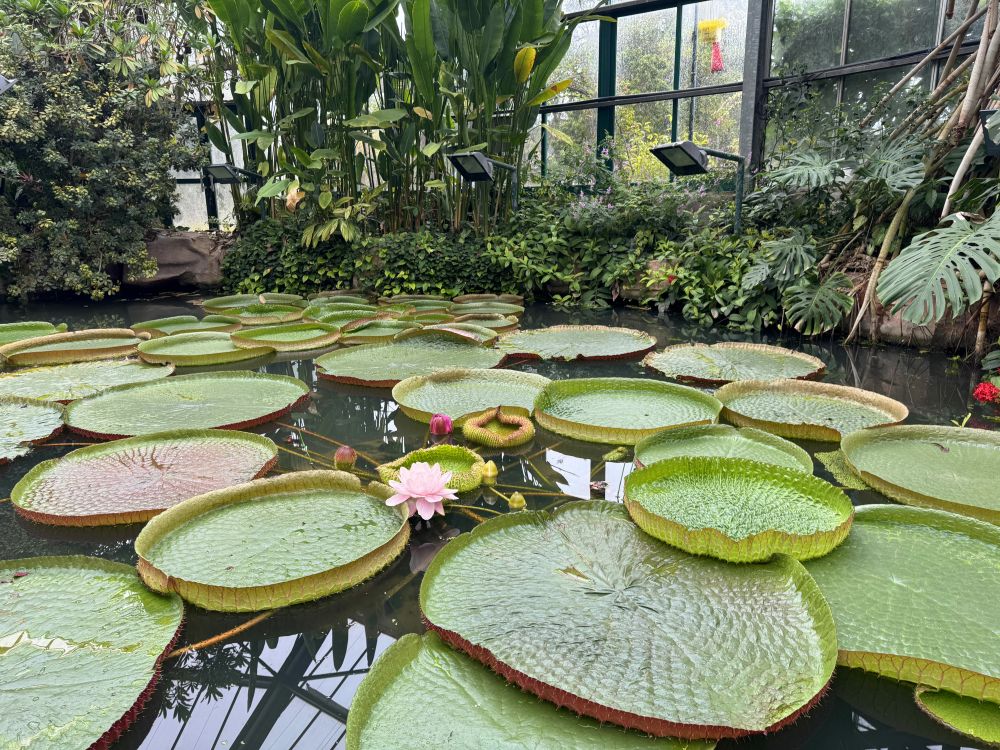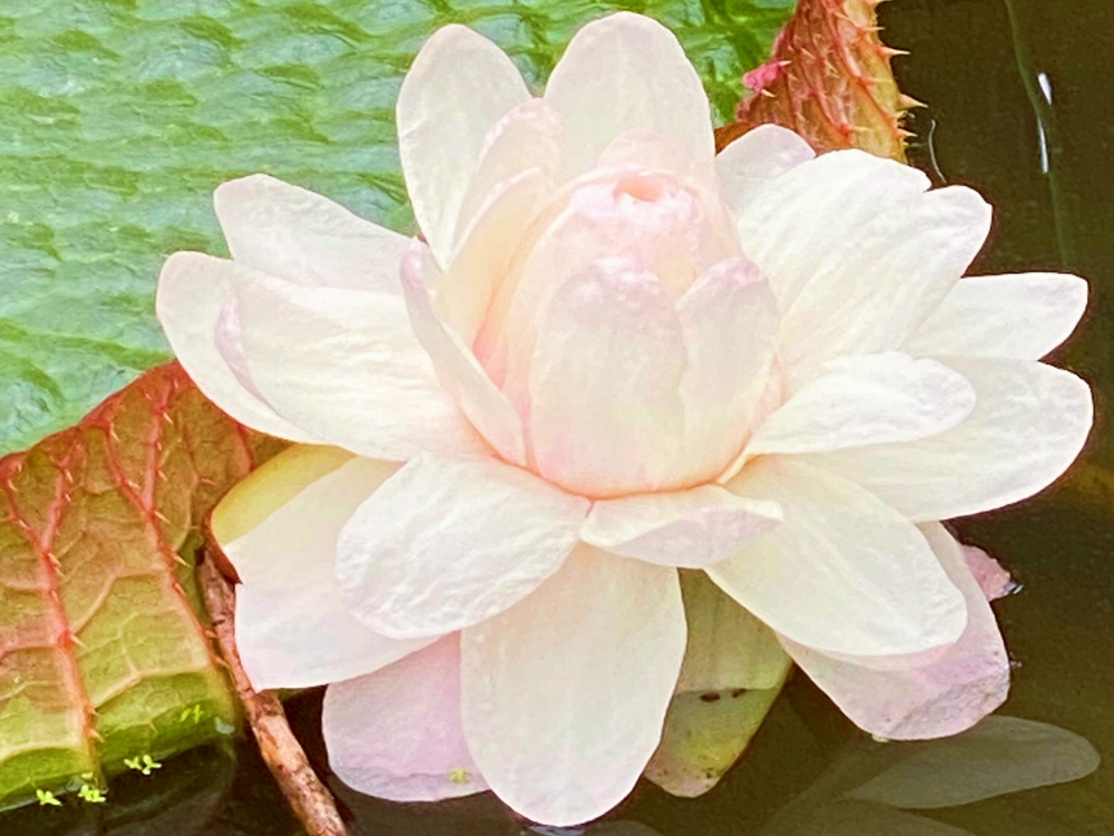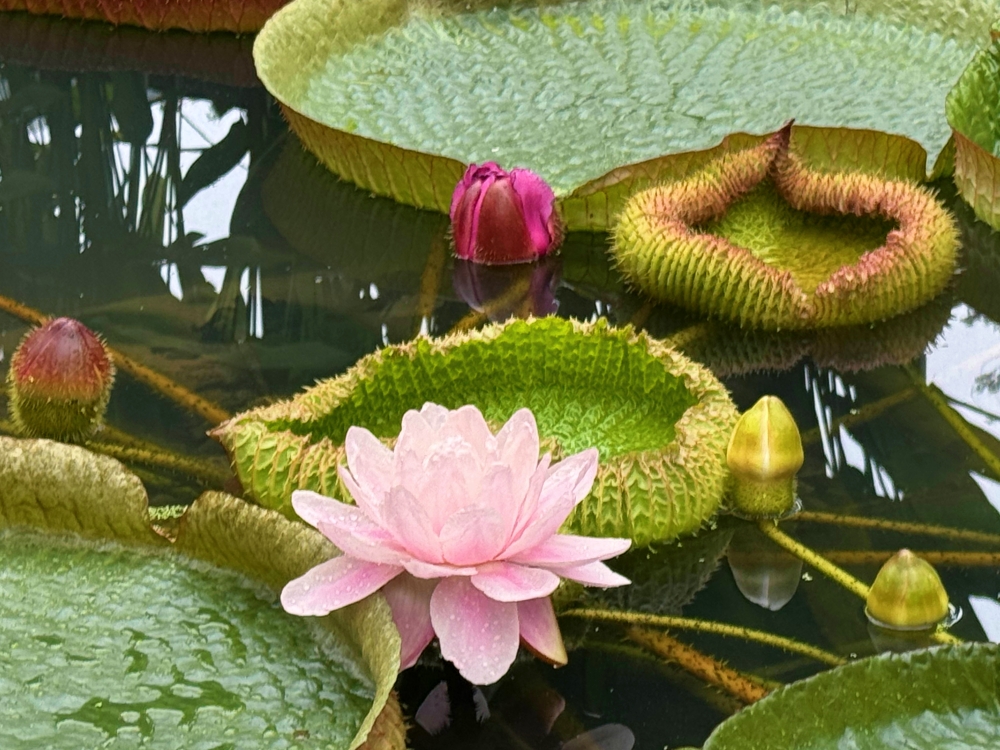图7-10: 浅粉深红,花期处于第二天和第三天的王莲。