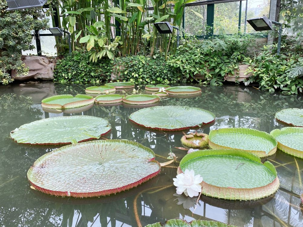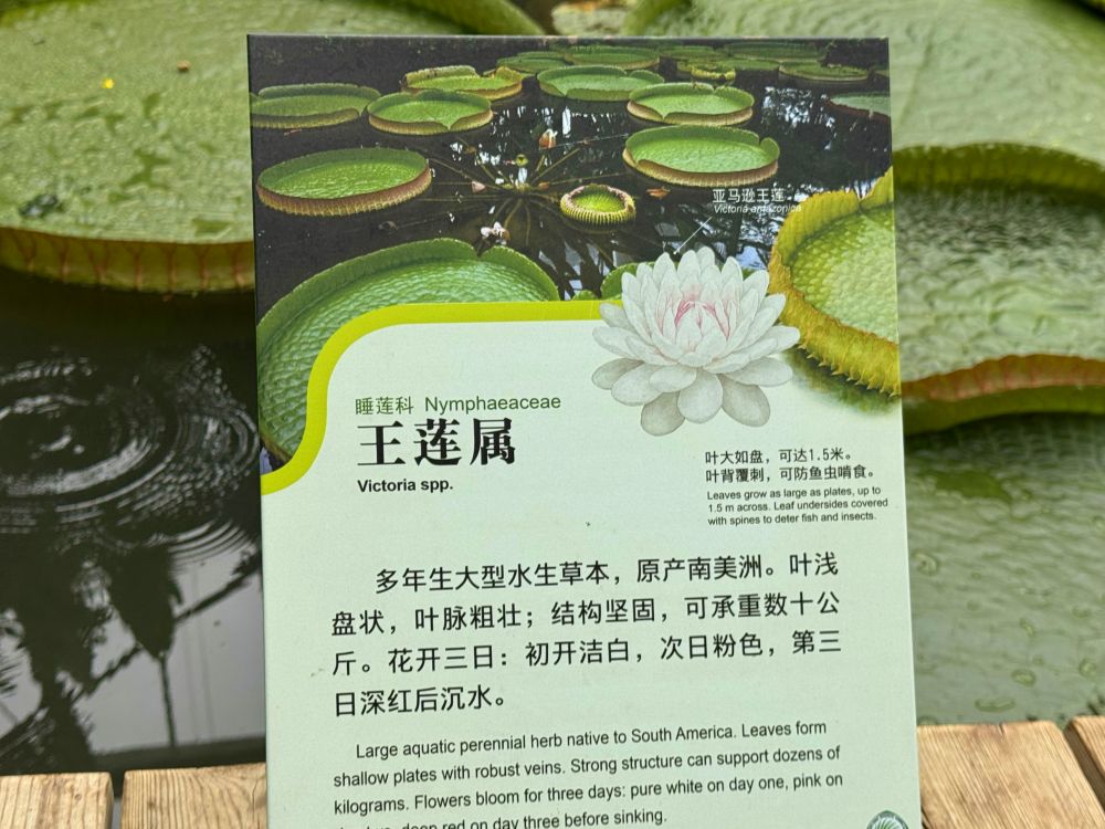王莲的一生,根系池泥水中生长,它的花朵两开两谢三天三色----蓓蕾初绽洁白如玉,次日花开浅粉渐深,再日秾红收合沉水;它的叶子巨大奇异,因为叶背上纵横交错的格式叶脉里充满空气,所以王莲的叶子不仅开展而且承重,另外叶面上无数小孔和两大缘缺还可以泻洪排水减轻负担保持平衡。