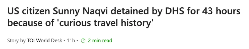 截至目前,国土安全部尚未公开说明拘留Naqvi的具体原因。