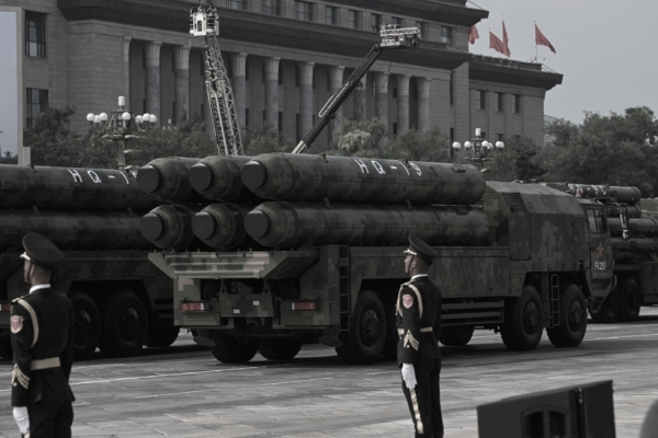 2025年9月3日,在北京阅兵式上,可以看到HQ-19反弹道导弹。(GREG BAKER/AFP via Getty Images)