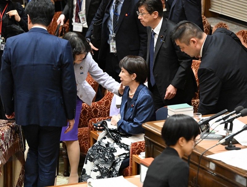 高市早苗在国会出席众议院预算委员会时,坐在位子上一度难以起身,现场气氛显得有些紧张。(图/翻摄自高市早苗脸书)