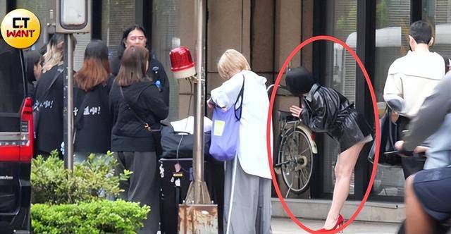 她没戴口罩,穿着熟悉的性感风格服装,后来又换上了黑色皮衣,搭配一双格外醒目的红色高跟鞋,按照摄影师的要求摆动作,全程没怎么说话,拍完就换回拖鞋上车,显得有些仓促。