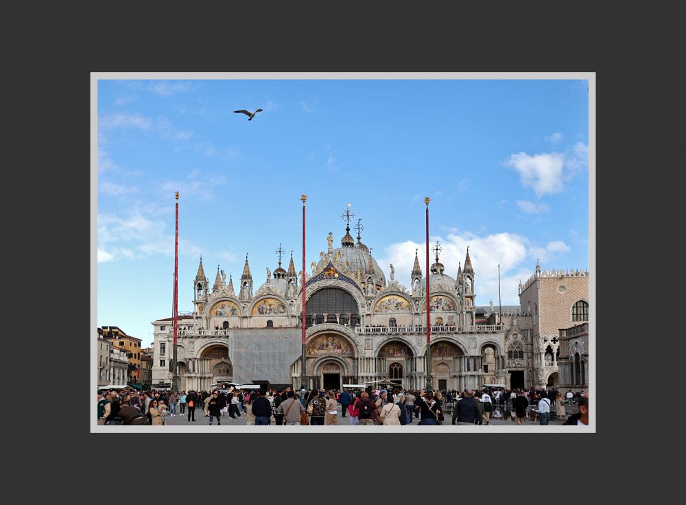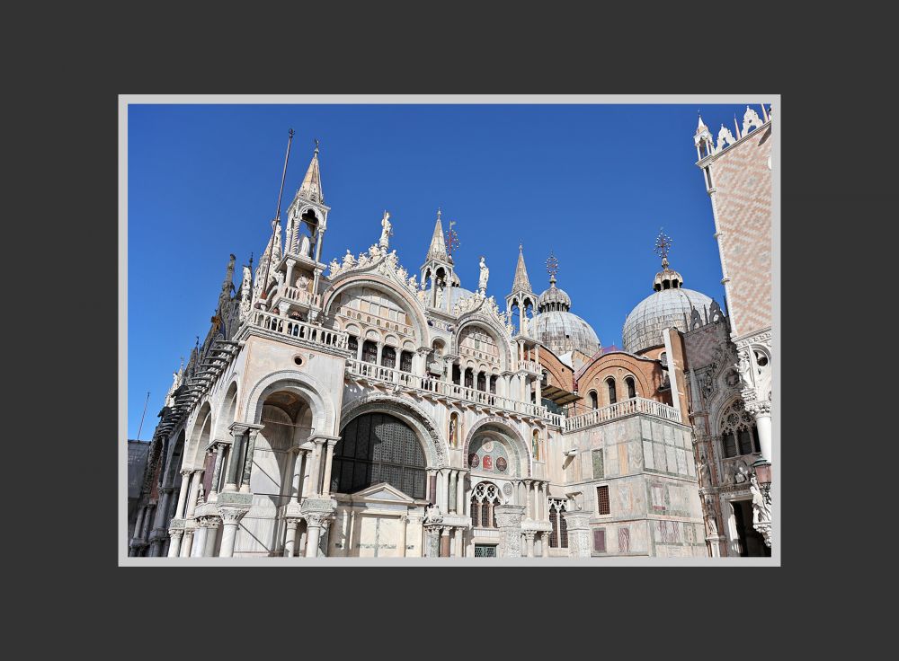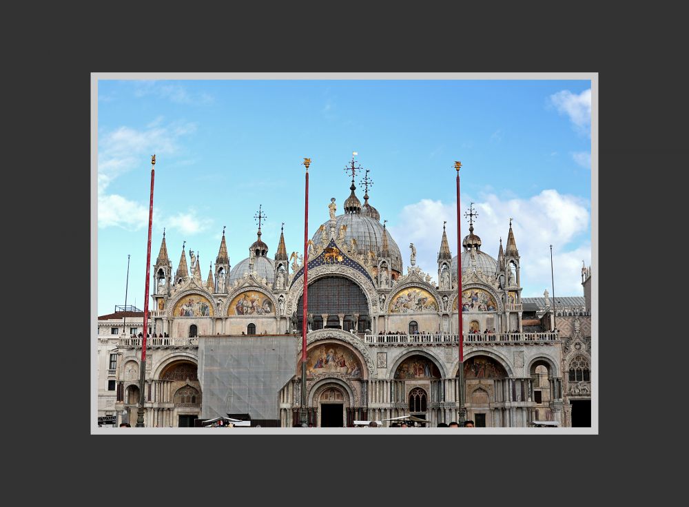 威尼斯的圣马可大教堂(St. Mark’s Basilica)位于在主岛东南面的圣马可广场的东端。背后不远便是潟湖的水面。圣马可大教堂是威尼斯最恢弘、最重要的一幢建筑。它不仅是一座教堂,更是这座城市千年来的象征。