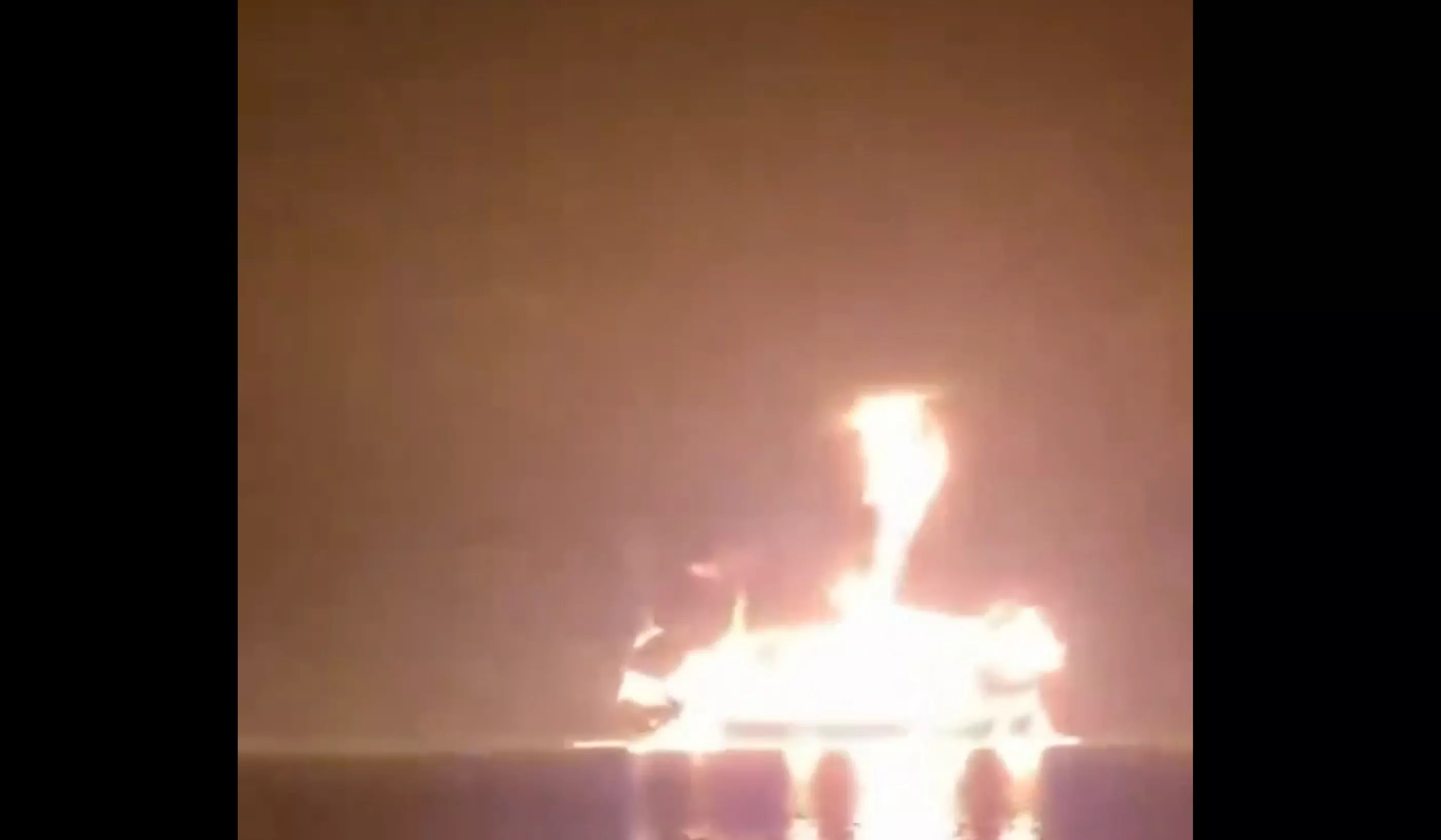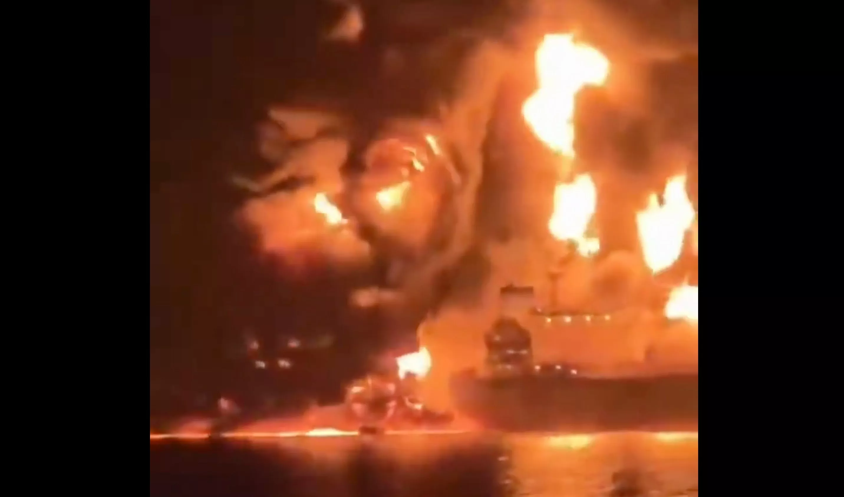 经外媒核实的影片显示,油轮遇袭后随即发生爆炸,巨大火球直冲天际,雄雄烈火染红了夜空。火焰其蔓延至周边水域,或是由漏油所致。船舶追踪数据显示,起火时两艘油轮曾并排停泊。