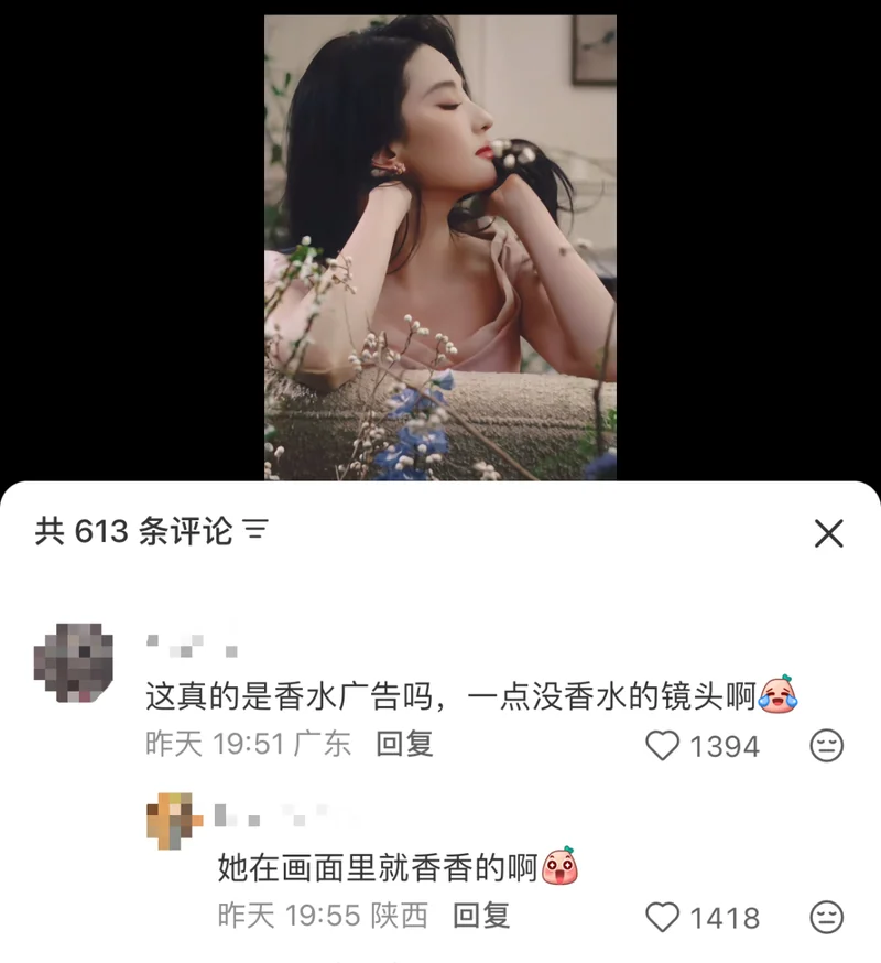 祖玛珑,直接给人家一个“史上首位华人全球代言人”,广告里产品都快找不着了,就放一张刘亦菲的脸。