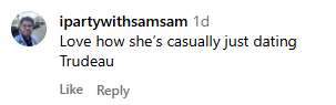 一位Instagram用户写道:“我喜欢她这种随随便便就在和杜鲁多约会的感觉。”