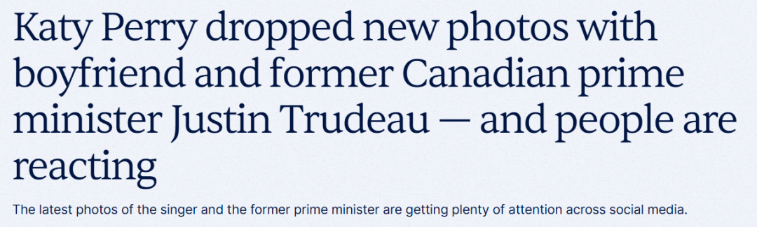 Perry和杜鲁多最早在2025年被传出恋情,当时只是约会传闻,后来两人在当年晚些时候公开承认了关系。此后,这对情侣偶尔也会在社交媒体上分享一些相处的片段,比如一起度假或外出活动的照片。