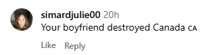 不过,也有网友指出:“你的男朋友毁了加拿大。”
