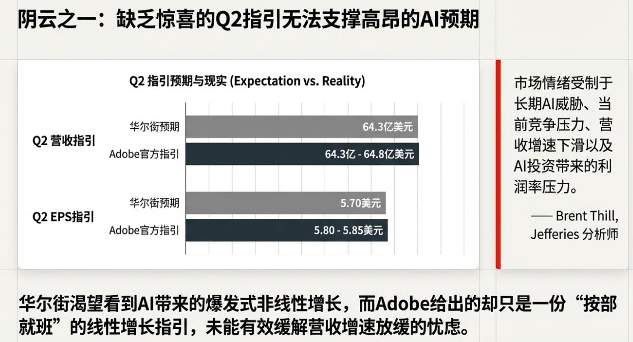 主导Creative Cloud平台建立、带领Adobe成功完成关键转型的CEO将卸任,正逢Adobe的指引表现平平,AI商业化路径仍在探索,这使市场情绪迅速转向谨慎。