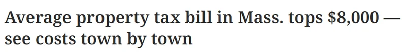 对一些房主而言,这一数字可能还算便宜——韦斯顿(Weston)、布鲁克莱恩(Brookline)等城镇的税额已超过26,000美元。