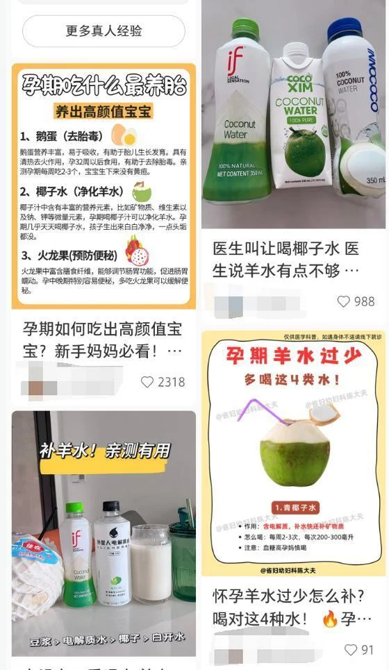 甚至还出现了“喝椰子水可以补羊水”的神奇言论。