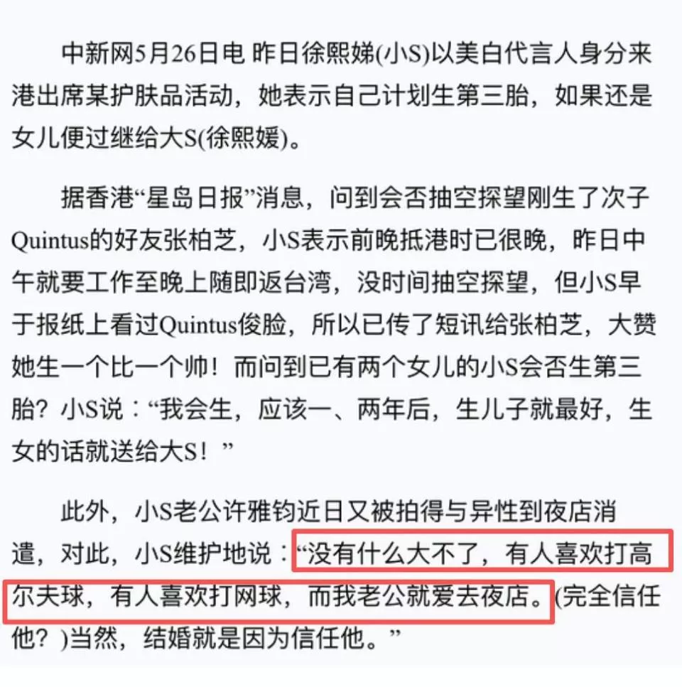 最夸张的是,有一次《康熙来了》的嘉宾当着小S的面爆料有男性朋友摸她的背,当场就被大家猜测这位男性友人就是小S的老公,场面一度尴尬。