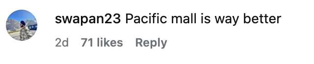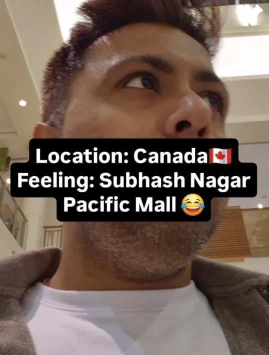 他还在视频配文中写道:“Socha Canada aa ke sab alag hoga... Pacific Mall ki yaad dila di”,意思是:“原以为来到加拿大一切都会不一样,但这里让我想起了Pacific Mall。”